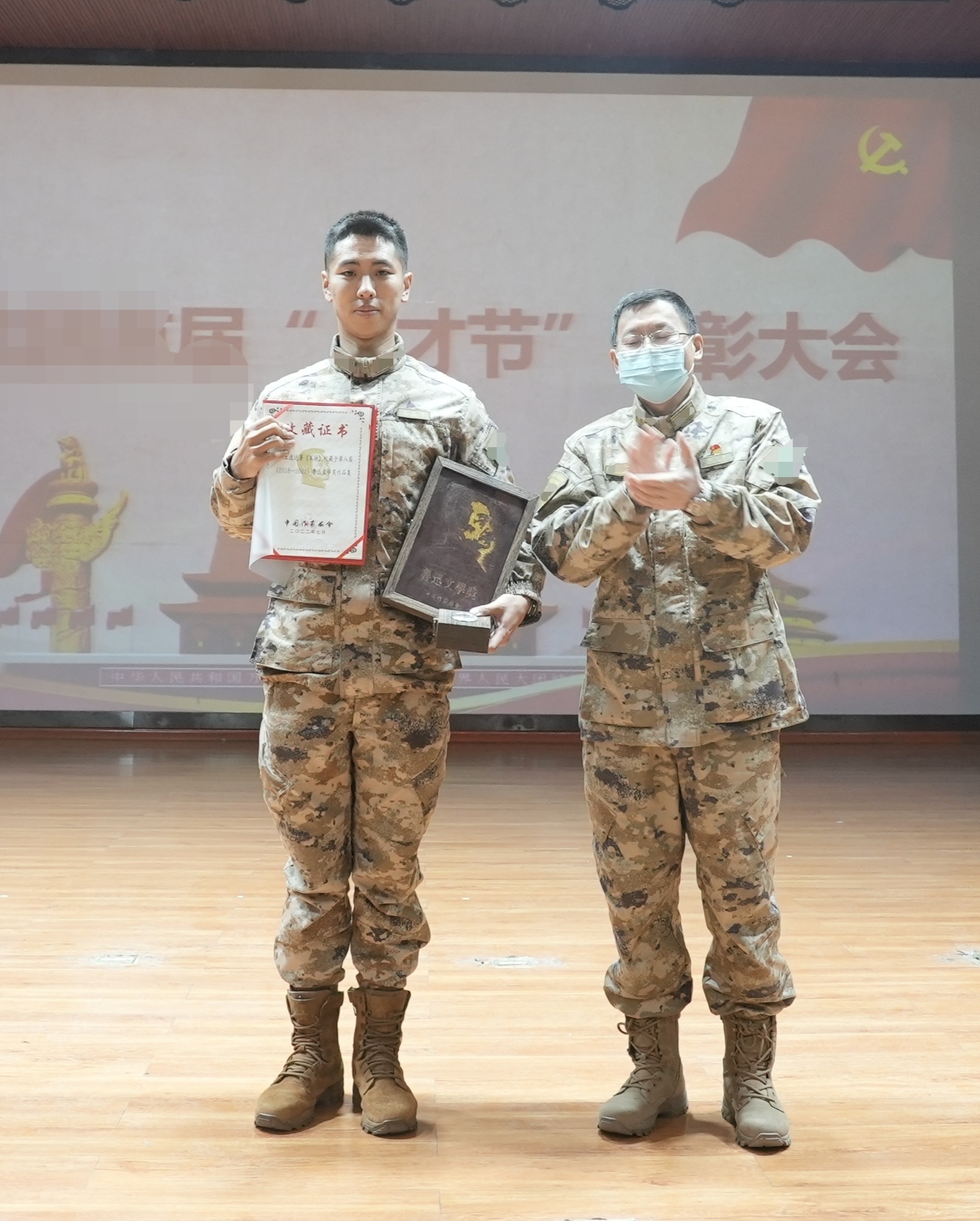 在校期间,荣获国防安全书画摄影展第一名与第三名,人民的艺术书画展卓越作品奖,在多人协同下撰写3万余字论文《大学生士兵退役后心理发展状态》论文荣获2025年全国心理健康优秀科研论文一等奖。