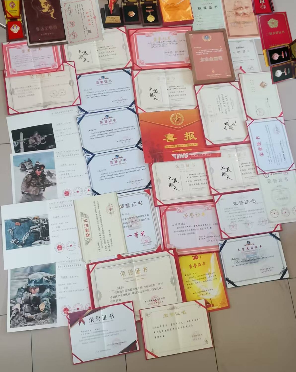 先后荣获中国人民解放军庆祝中华人民共和国成立七十周年美术作品第二名(军级)、中国国际年鉴大奖赛优秀奖、第一届大美航天美术展美术作品优秀作品、第二届大美航天美术展美术作品第一名、达芬奇国际艺术大奖赛铜奖、国际双年展铜奖等各类国内外奖项。个人创作的军旅题材小说《军妆》,被单位推送参与评比,入围“军事文化鲁迅文学奖”,小说《枣》入选铸剑文学,并获颁收录证书。。