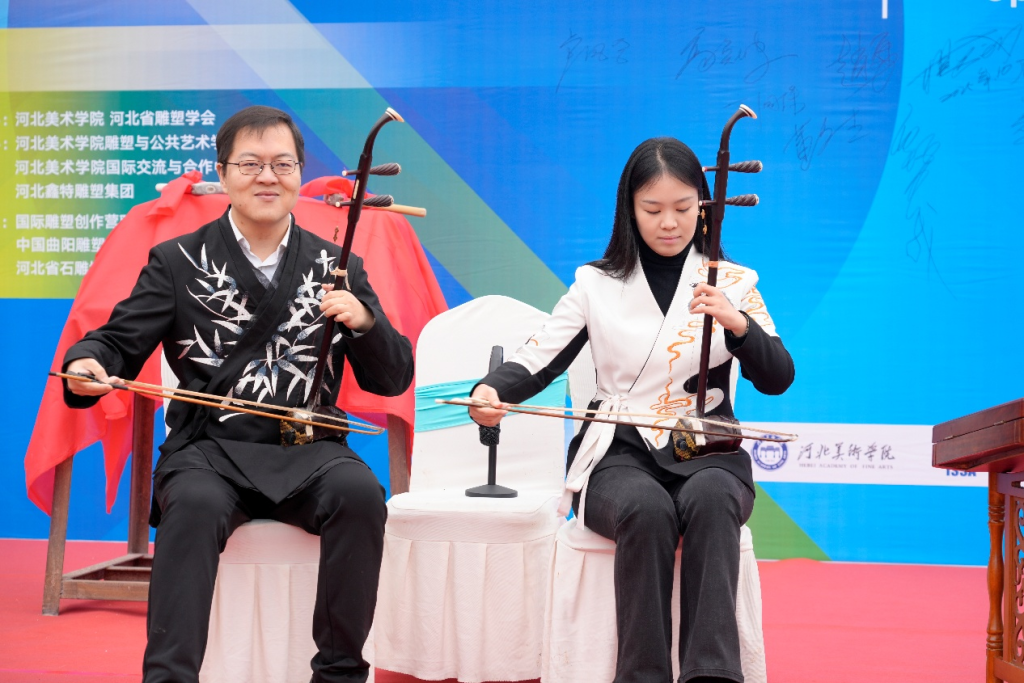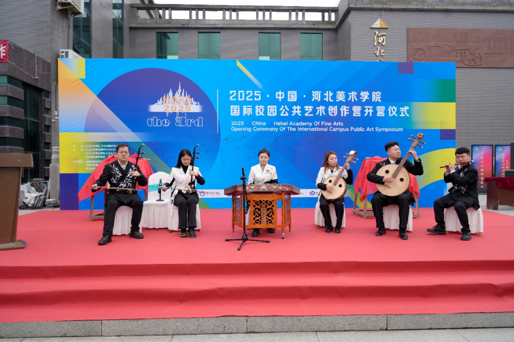 2025年10月11日,“2025·第三届河北美术学院国际校园公共艺术创作营”开营仪式在河北鑫特集团举行。河北美术学院艺术团民族管弦乐团应邀倾情献艺,以一曲曲悠扬动听的民族经典,为本次艺术盛宴拉开了精彩序幕,赢得了现场领导、嘉宾及社会各界人士的高度赞誉与热烈掌声。
