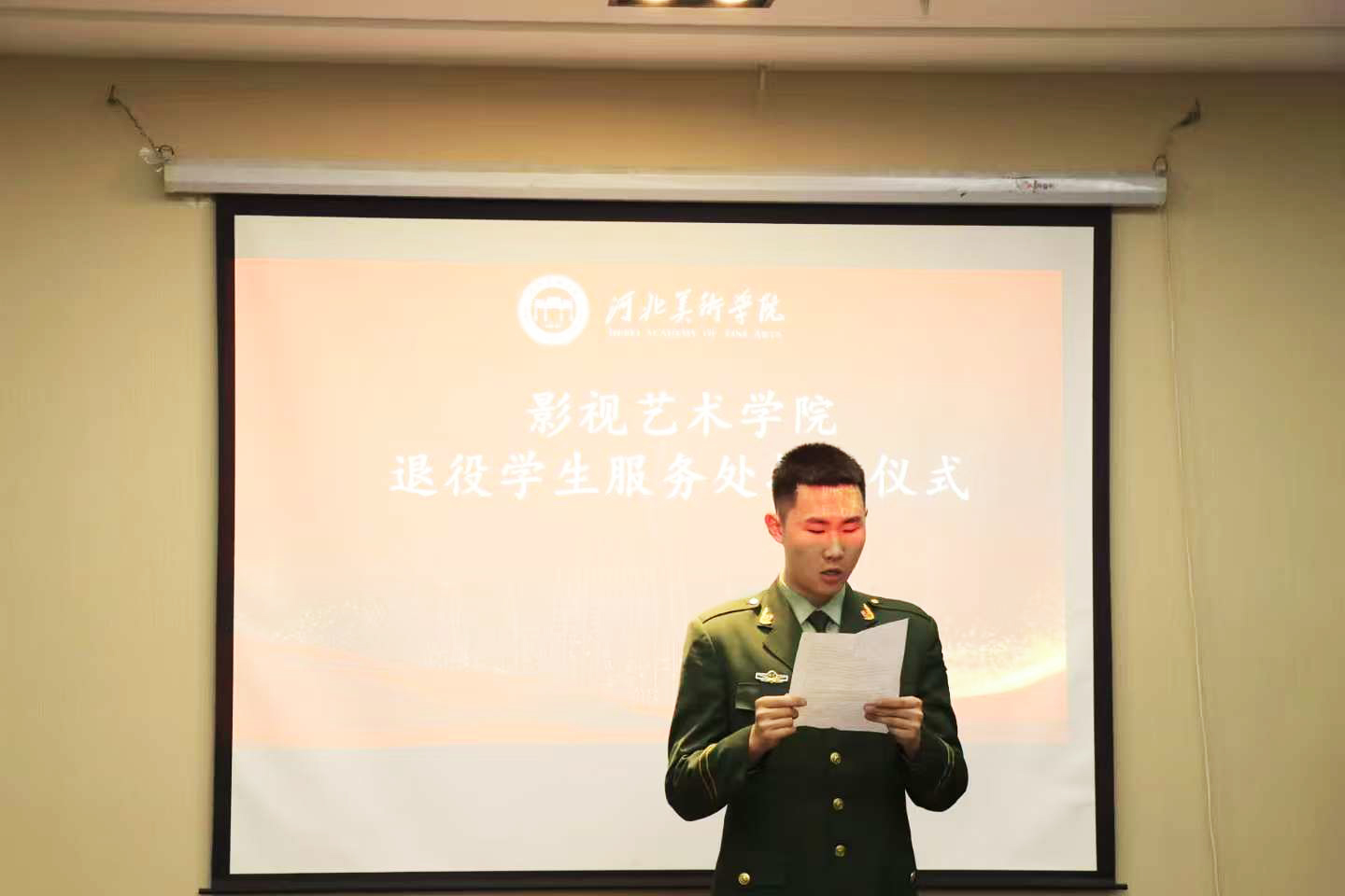 2025 年 10 月 29 日上午 9 时,河北美术学院影视艺术学院退役学生服务处揭牌仪式在一号综合楼 706 报告厅举行。学工处处长、武装部部长周文静,影视艺术学院党委副书记、副院长孙娟娟,学院大一年级主任王鸿飞、大二年级主任张梦琦、大三年级主任韩立岗、大四年级主任支晓及学院师生代表共同见证。