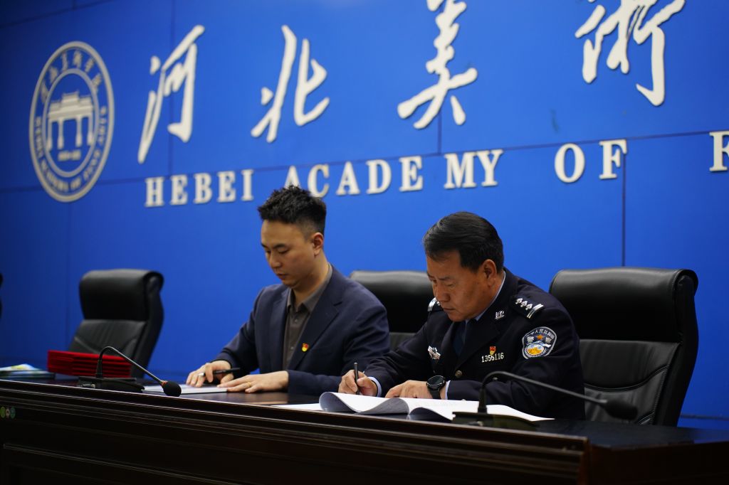 活动伊始,双方党员代表共同参观了红色文化长廊、红色文化情景园、党的二十大精神宣讲墙、青年毛泽东雕像等校内红色教育基地。通过沉浸式党建情景教育,进一步强化了“禁毒为民、艺心育人”的政治共识,为后续合作奠定了坚实的思想基础。上午 10 时,双方在正成报告厅举行禁毒公益宣讲与校所合作签约仪式。河北美术学院影视艺术学院党委委员、第一党支部书记、影视摄影与制作教研室主任肖秩凡,河北省女子强制隔离戒毒所戒治科党支部书记、科长张富有分别致辞,表达了以党建为引领、推动禁毒教育与艺术创作深度融合的坚定决心。随后,“闪耀的桔灯”公益宣讲团开展禁毒专题宣讲,通过真实案例揭露“奶茶杯”“邮票”等新型毒品的伪装形式与严重危害,增强了师生识毒、防毒、拒毒的意识和能力。在合作仪式上,我院为戒毒所 5 名优秀民警颁发“法治辅导员”聘书,戒毒所也为我院 5 位优秀教师颁发“思政辅导员”聘书,为优秀师生代表颁发“禁毒宣传志愿者”证书。双方党支部代表现场签署《联学共建协议》,明确将在影视禁毒创作、短片制作、公益广告开发等多方面开展深度合作,实现“党建+教育+公益”的多元共赢。互动问答环节中,师生围绕“新型毒品识别”“禁毒短片创作”“法治辅导员职责”等问题踊跃提问,戒毒所警官逐一给予专业解答,现场气氛热烈。