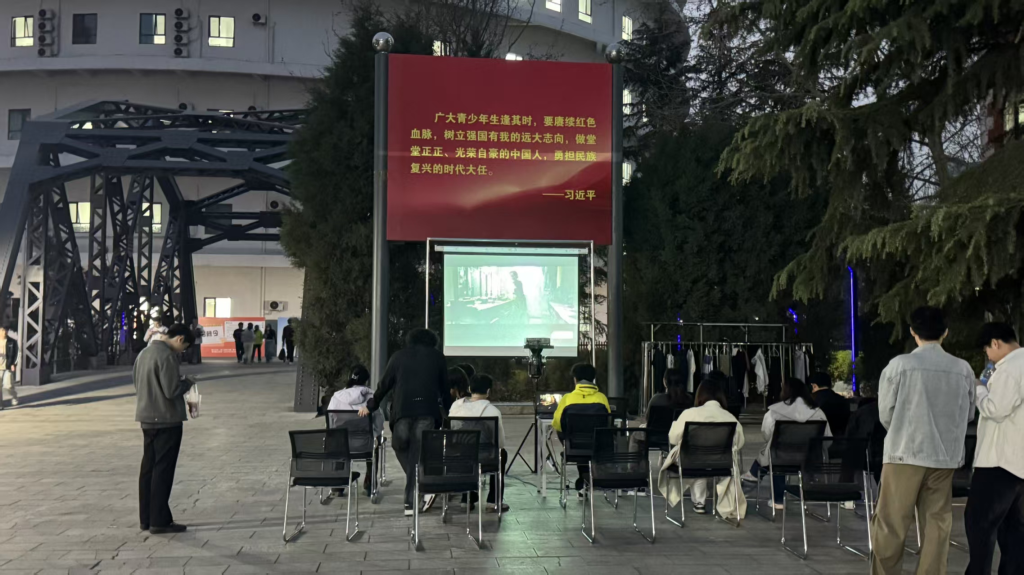 夜幕缓缓降临,校园灯光渐渐调暗,在众人期待中,影片正式拉开帷幕。本次放映影片为《南京照相馆》,同学们有序落座、静心观看,在沉浸式的光影画面中,跟随剧情感受历史温度与人物情感,在故事里体会家国情怀与人性光辉。