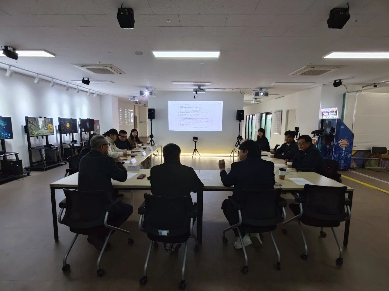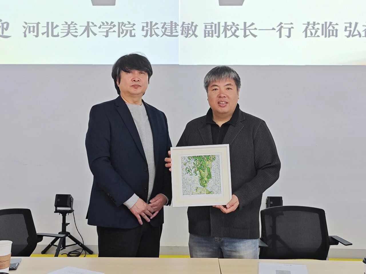 在参观弘AI博物馆及VR博物馆期间,双方深入探讨了生成式AI辅助设计、AI与数字媒体艺术课程开发、人机协作工作坊等前沿方向,并就探索跨校AI协作创作项目、联合策展、艺术工作坊等常态化交流机制交换意见,约定年内签署合作备忘录,正式启动首批交流项目。