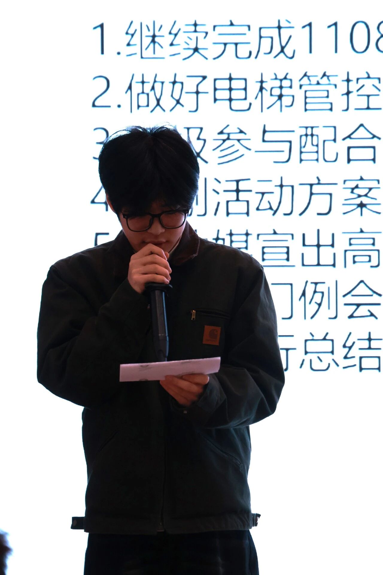 大会开始先由办公室部长孙桐桐,汇报本次大会应到和实到人数。