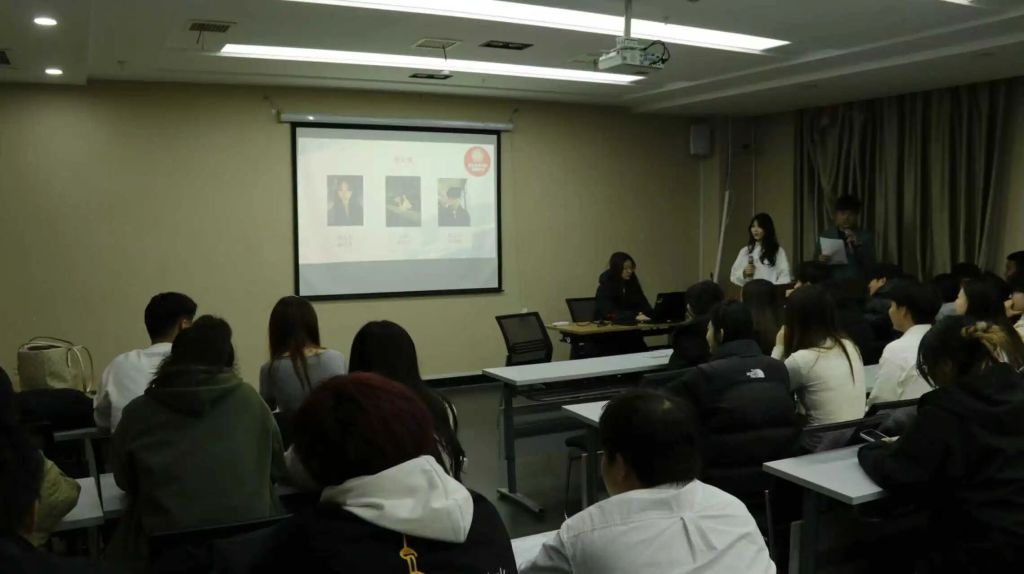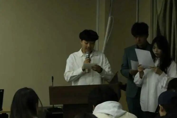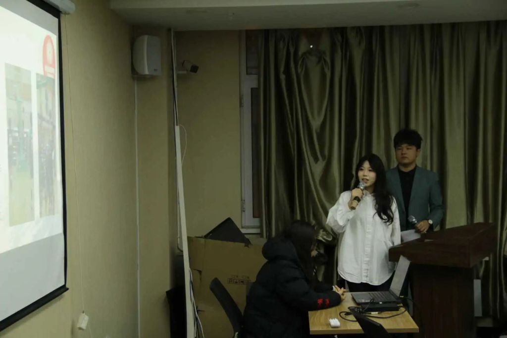 媒宣部副部长李木雨上台汇报了本学期的推文和抖音短视频的发布成果 2万余次浏览量,设计工牌工服,计划本学期培养高能力的剪辑人才,持续更新社联各个网络平台,积极优化拍摄质量