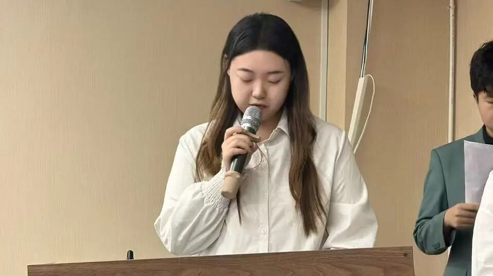 随后,由社联新生代表刘超炜上台发言。他首先代表全体新成员,向学院指导老师的专业引领、社联学长学姐的悉心帮带致以诚挚感谢,强调新生群体应以新鲜血液展现昂扬姿态融入社联,主动学习社联优良工作作风。