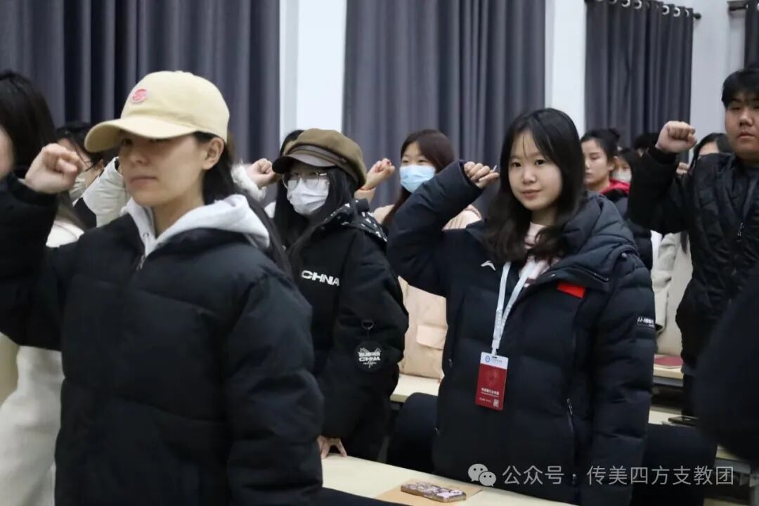 在会议的最后,全体支教团成员上台合影留念。伴着青春的节奏,让我们在支教的日子里不忘初心、砥砺前行。将爱凝结成雨露去滋润每一颗小小种子。带领孩子们学习更多知识,见识更宽广的世界。新的学期,传美四方支教团依旧“热辣滚烫”!
