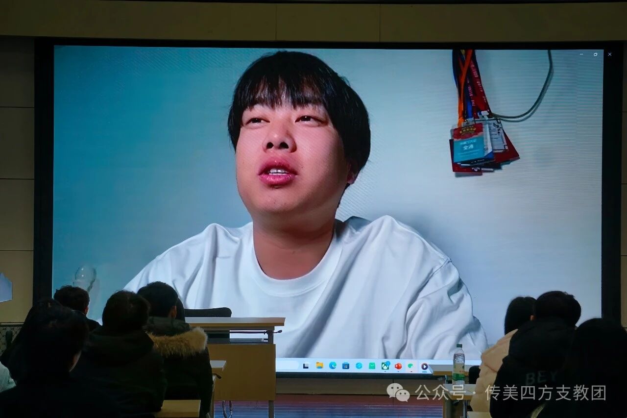 我们也邀请到了第三届团长曹鹏,他的发言将会议气氛推向了高潮。曹鹏学长与我们分享了一些他与支教团的经历,那些与孩子们共度的欢乐时光,以及他在生活中的工作经验和工作心得。他的话语中,既有对过去工作的高度肯定,也有对新一届成员的殷切期望。他鼓励大家要传承支教团的优良传统,勇于创新,敢于担当,用实际行动为孩子们带去更多的知识和关爱。