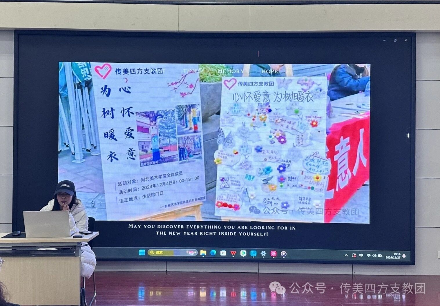 2024年12月27日星期五晚上六点半在北高层五楼会议室召开闭团大会。到场人员有传美四方支教团团长郭江飞,副团长许明霞、赵鹏飞,传美四方支教团各部门部长及传美四方支教团的干事们。