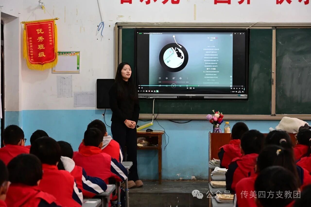 一年级的《懒洋洋当大厨》以轻快节奏贴合童真,支教老师蹲下身握起孩子们的小手打节拍,将歌词化作“食材小游戏”,让胆怯的孩子渐渐主动开口,在欢声笑语中传递分享的快乐;二年级《熊出没》熟悉的动画旋律自带亲切感,歌词里的勇敢与陪伴直击童心。三年级的《奇迹再现》用激昂旋律点燃探索欲,老师耐心纠正每一个音符,鼓励孩子们从不敢当众演唱到主动领唱,让“坚持创造奇迹”的信念深植心底。四年级《改变自己》孩子们在歌声中学会反思与调整,懂得从小事做起改变自己。传递进步力量,五年级《大梦想家》温柔又有力量的旋律,点亮少年对未来的憧憬。六年级《下一个天亮》治愈毕业离别,在轻柔的歌声中,孩子们学会珍惜时光、勇敢告别,更在与老师的相处中,感受到了温暖与力量,从对毕业的迷茫不安变得从容坚定,以温柔的姿态迎接新阶段的挑战。每首歌都与孩子们的成长节点精准契合,在传唱中教会他们勇敢、团结、追梦与从容。