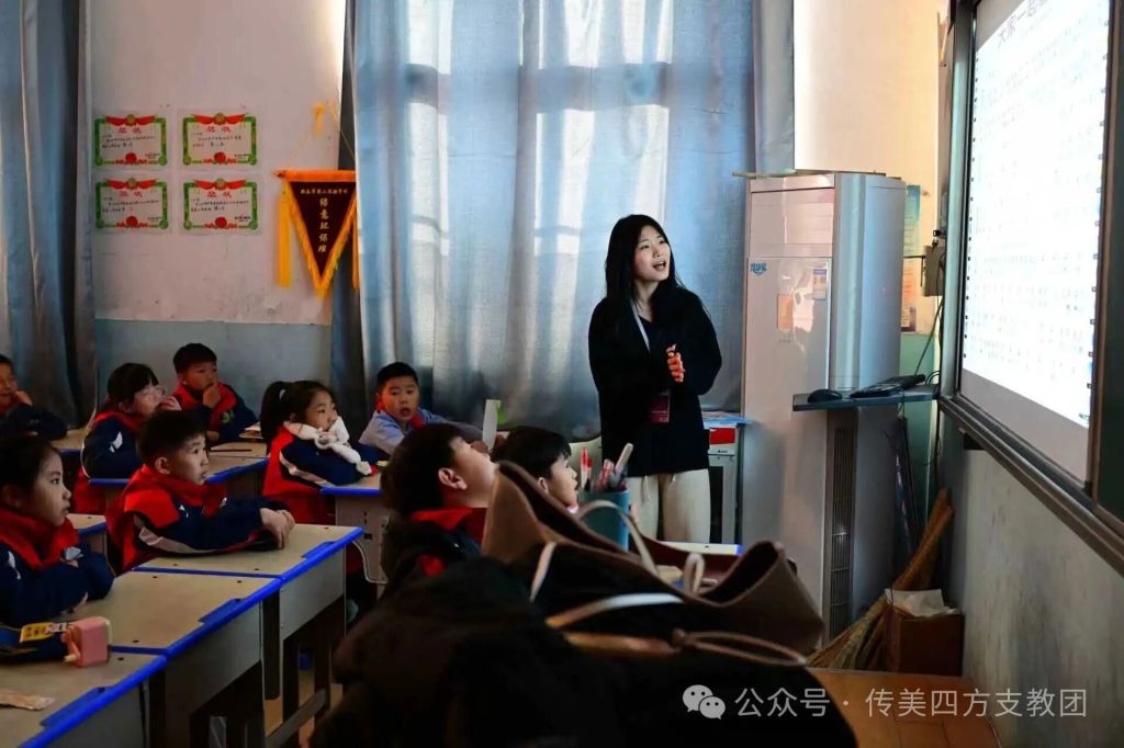 音符是不被定义的力量,它是跨越山海的信使,也是点亮童心的星光。音乐的旋律不仅传递温情,用心谱写的词曲也编织梦想。本次支教,让孩子们尝试在歌唱中感知美好,当支教团带着精心撰写的音乐课程奔赴课堂,恰与孩子们的盼望和期待撞个满怀,支教团撰写的每一个音符都如同播撒的种子,细心的教授如春雨,让音乐这颗大树的力量托举孩子们的欢声笑语,浸润课上的欢快时光。