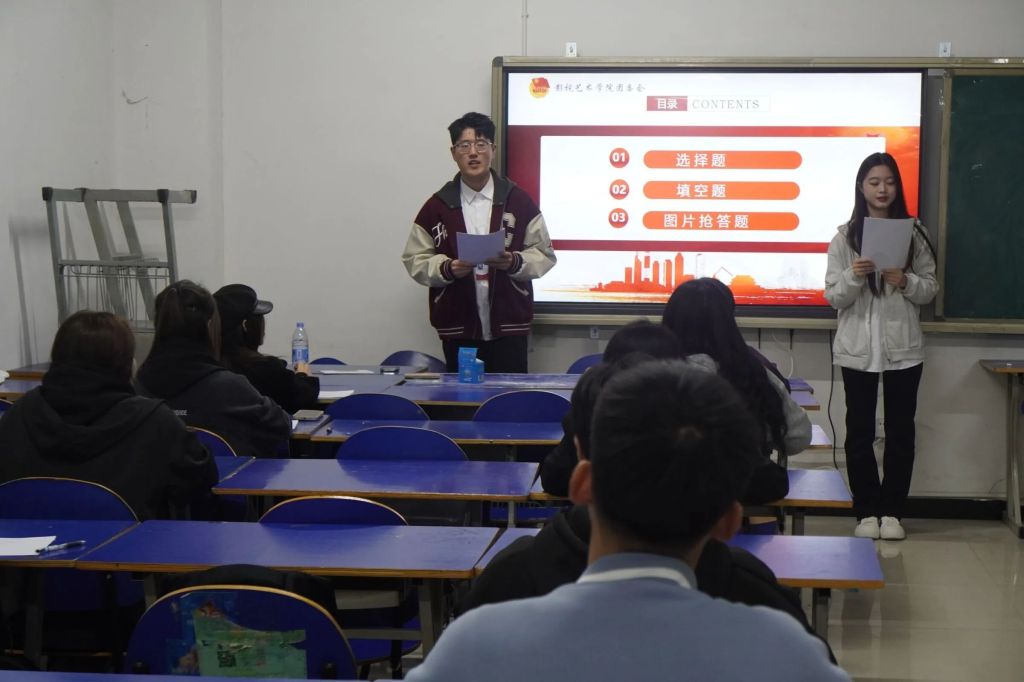 为进一步落实学习革命文化和红色精神,坚定理想信念,进一步提高全体青少年对党史、团史学习的热情,引导广大青年了解中国共产党和中国共青团的奋斗历程,激发爱党爱国热情,影视艺术学院团委会于2024年3月13日下午四点在影视艺术学院综合楼公共教室B01教室举行党团知识竞赛,参加本次活动的有影视艺术学院团委会主席团和各部门部长以及参赛人员。