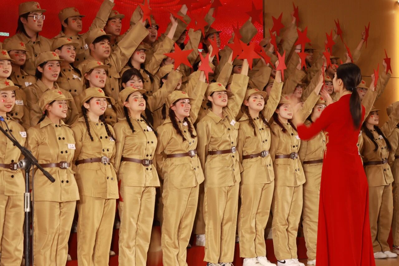 随后设计学院的《唱支山歌给党听》以其纯净的歌声和真挚的情感打动了在场的每一个人。歌声婉转悠扬,如同一股清泉沁人心脾,让人感受到红色基因在新一代青少年心中的传承与延续。书法学院的《黄河大合唱》以其磅礴的气势震撼全场,同学们用雄浑有力的歌声,描绘出黄河奔腾不息的壮丽景象,展现了中华民族不屈不挠的精神。指挥者的手势精准有力,引领着歌声如波涛般起伏,现场气氛热烈,观众们仿佛置身于黄河之畔,亲耳聆听着那震撼人心的怒吼。