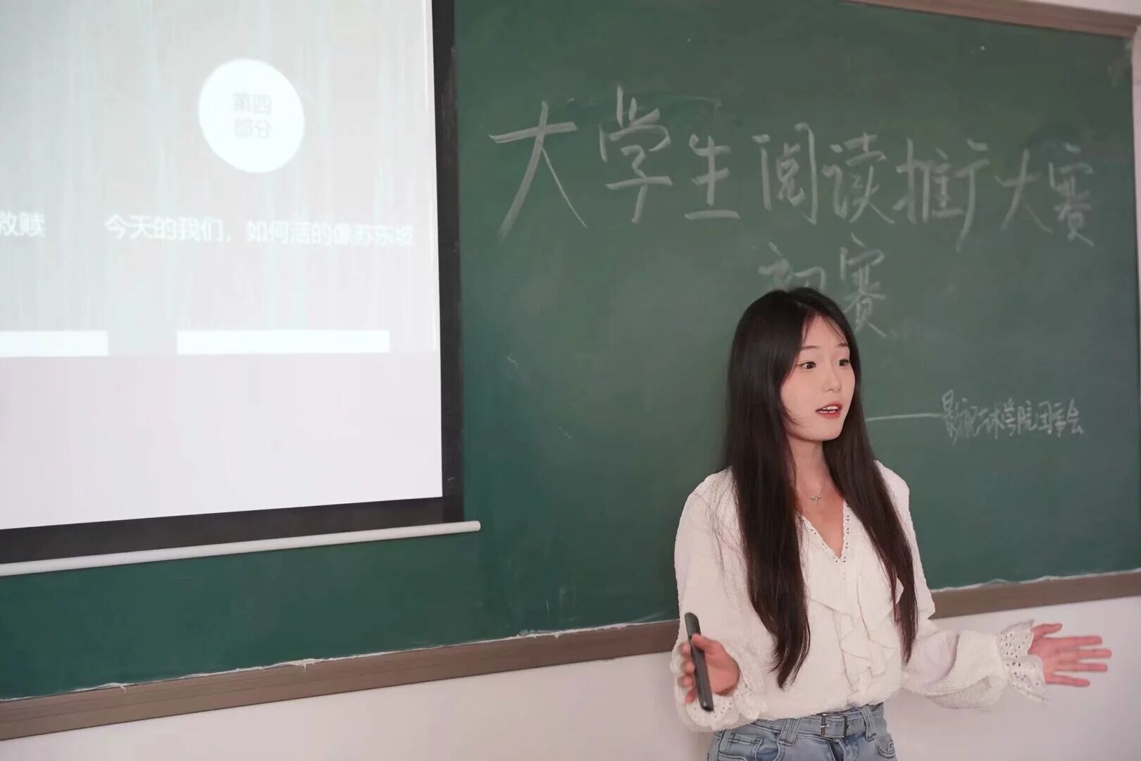 为深入贯彻国家“全民阅读”战略,4月9日下午,由影视艺术学院团委会主办的“大学生阅读推广大赛”初赛,在一号综合楼1414教室顺利举行。本次活动以“书香致远,思辨启新”为主题,希望通过学生们的阅读分享,带动更多人爱上读书,激发校园阅读热情。