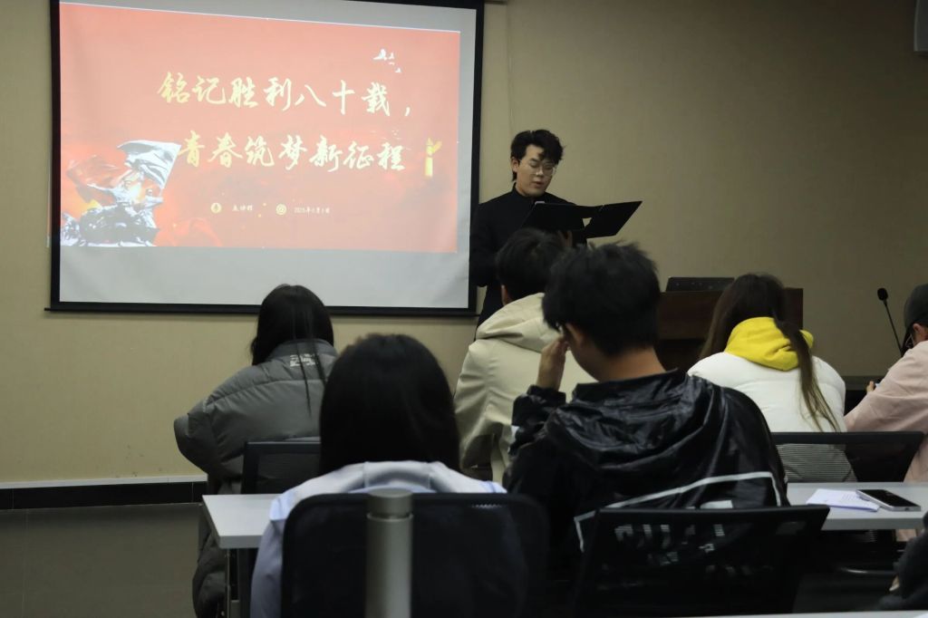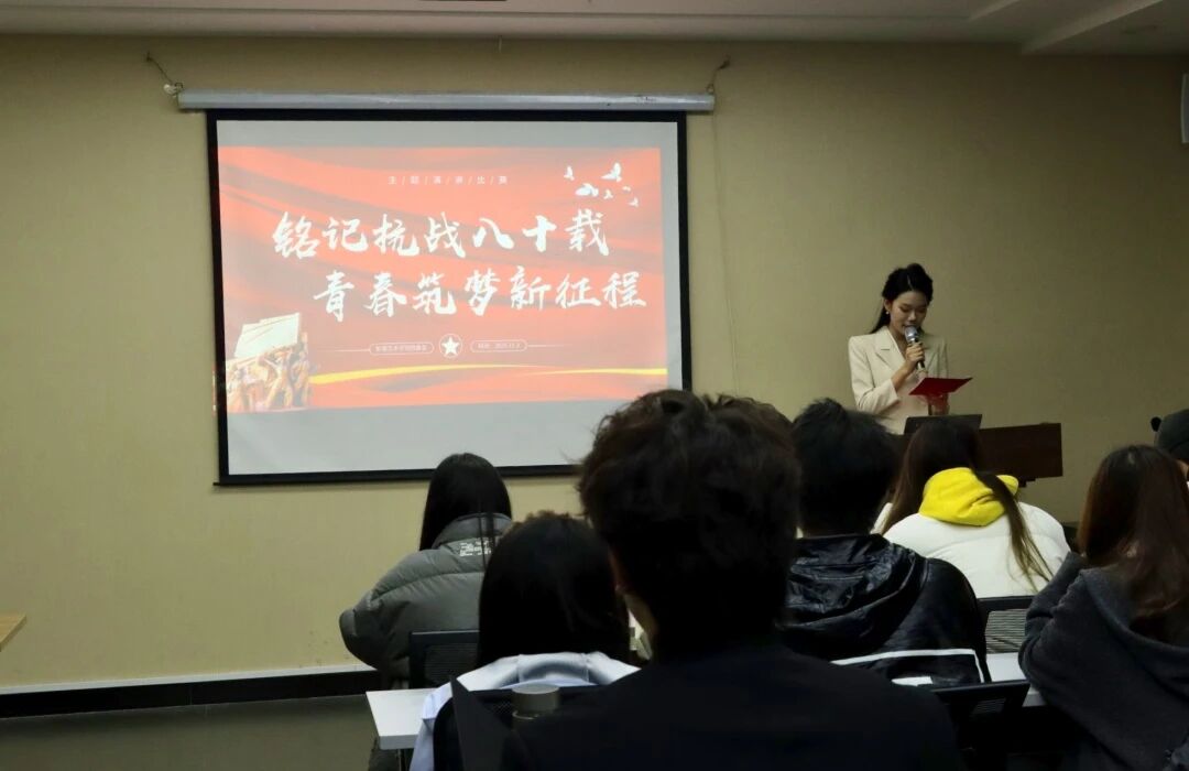 为纪念中国人民抗日战争胜利八十周年,传承红色基因,弘扬伟大抗战精神,11月3日晚6点30分,河北美术学院影视艺术学院团委会在1号综合楼 706 成功举办 “铭记抗战八十载,青春筑梦新征程” 演讲活动。学生们积极参与,用激昂的语言、真挚的情感回望抗战历史,诉说青春担当。
