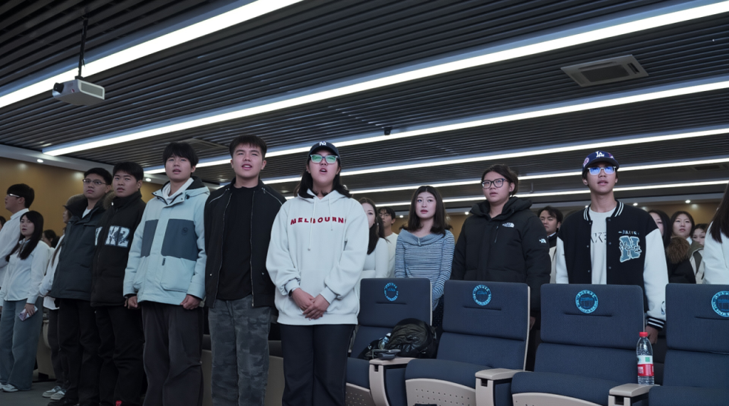 激昂嘹亮的团歌响起,全体成员起立高唱团歌。旋律回荡间,尽显团委会成员昂扬向上、奋发有为的精神风貌。