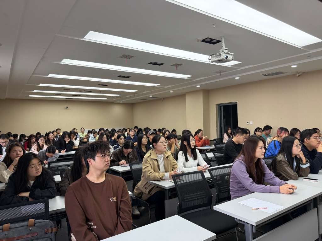 同学们在之后的互动答疑环节中热情高涨,围绕岗位具体要求、实习培训安排、薪资福利细节等核心问题踊跃提问,任经理则结合公司实际情况,一一耐心且细致地解答,专业又接地气的回应让现场氛围持续升温,不少同学都表示收获满满。