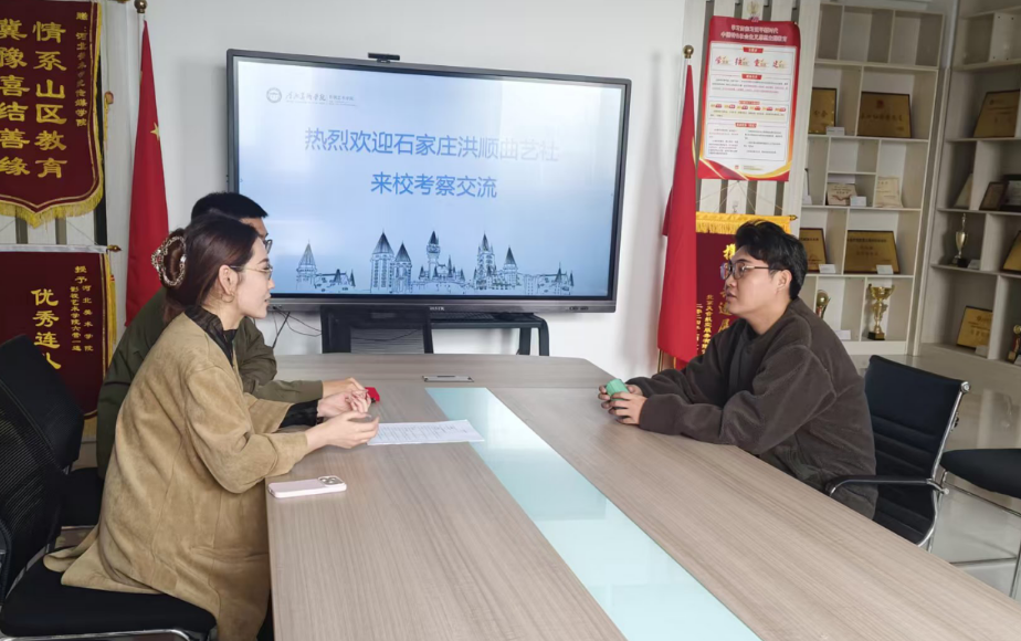 2025年10月15日,石家庄洪顺曲艺社文化传播有限公司一行走进我校影视艺术学院,开展校企合作交流活动。曲艺社负责人与学院表演专业负责人围绕曲艺人才培养、行业发展趋势等话题展开深入探讨,为后续合作奠定坚实基础。