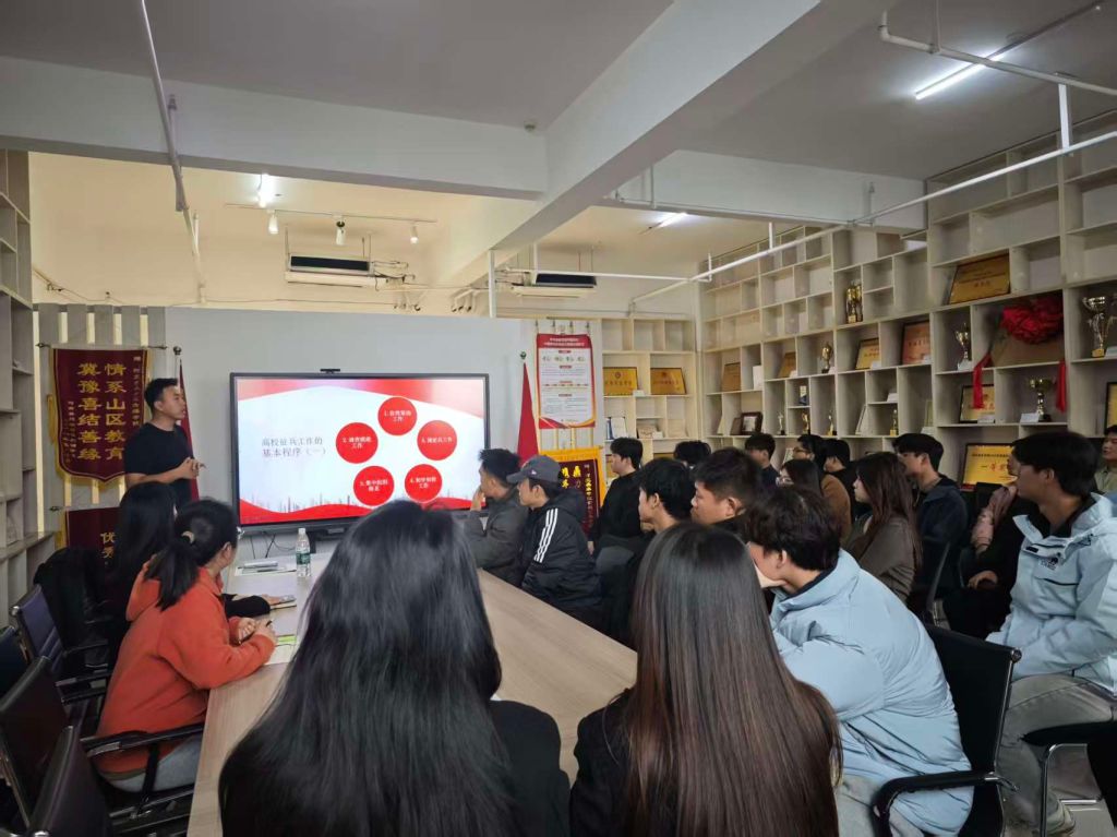 为进一步做好2026届高校毕业生征兵政策宣传工作,激发大学生参军报国热情,10月29日下午,我院在荣誉室举办了“携笔从戎 建功军营”征兵政策宣讲会。宣讲由武装部郭子凡老师主讲,重点入伍意向学生参加了本次活动。